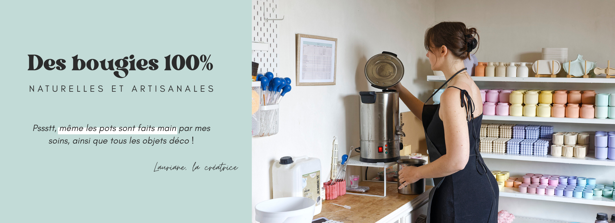 Les pots, les objets déco et les bougies : tout est fait par mes soins, dans mon atelier, en Charente.
