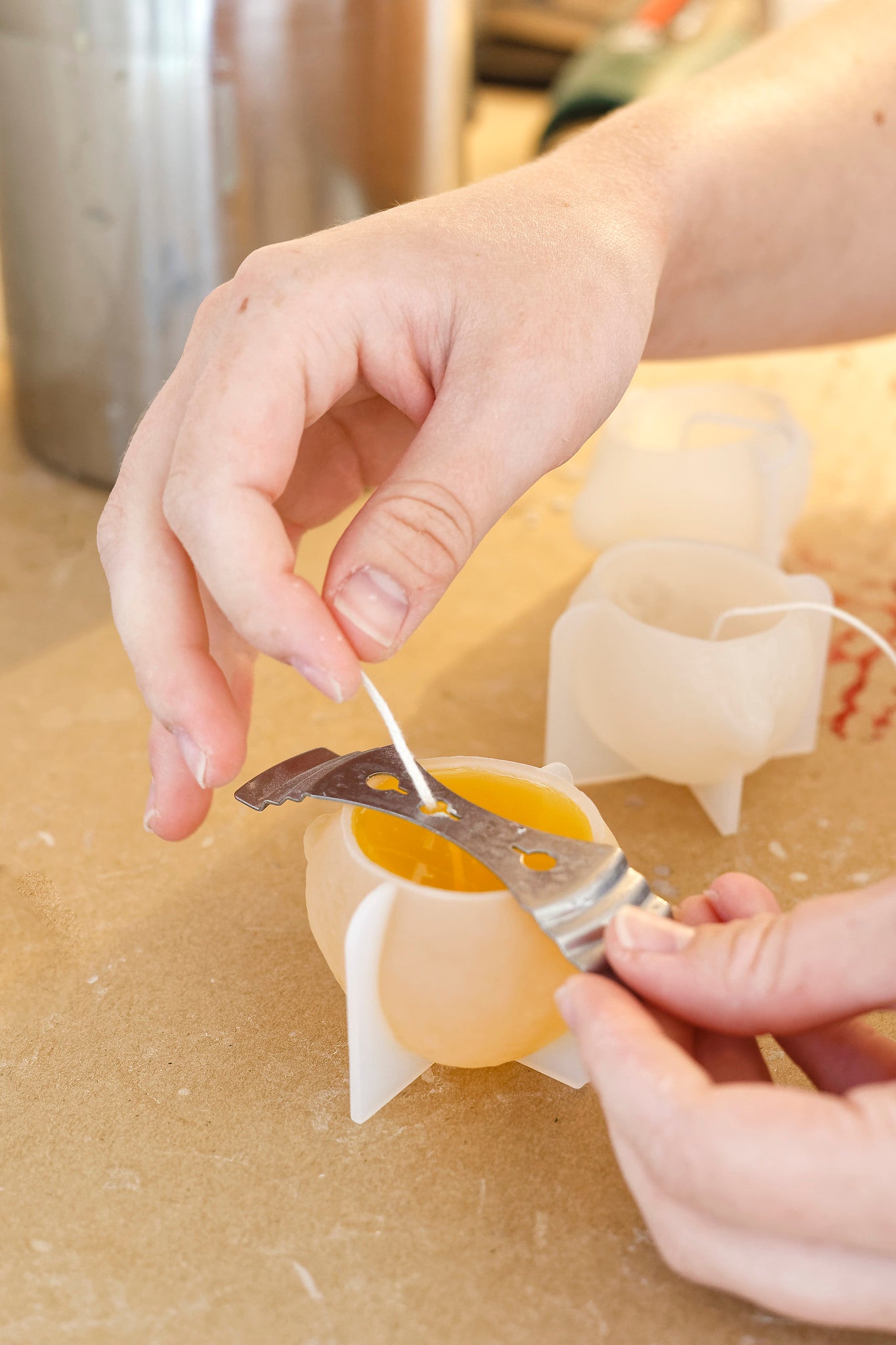 Je fabrique aujourd’hui chaque bougie de A à Z. Je conçois moi-même les contenants en jesmonite, puis je coule les bougies à la main avec des cires végétales et des parfums soigneusement sélectionnés. Chaque création est pensée comme un véritable objet de décoration, fait pour durer.