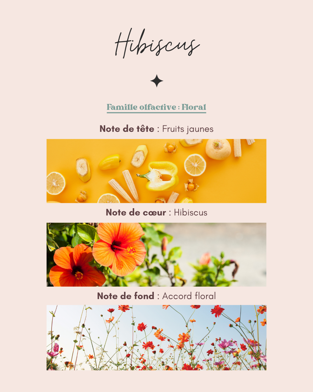 Son parfum d’hibiscus mêle douceur florale et légère fraîcheur fruitée. Allumée, elle apporte une ambiance lumineuse et positive, qui rappelle les jardins d’été et les fleurs tropicales.
